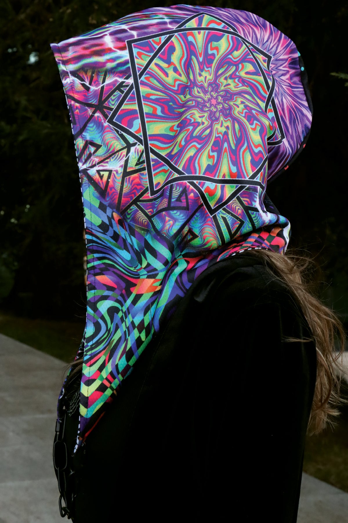 Whether you're dancing at a festival or adding a unique touch to your everyday look, this hood has got you covered—literally!